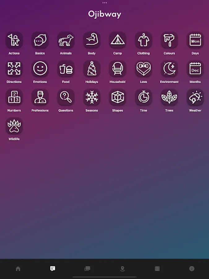 Learn to speak Ojibway using professional quality audio and pictures. Listen to the ancient languages of the Native American and First Nation peoples. Includes maps of Ojibway territories and videos showcasing Ojibway culture.