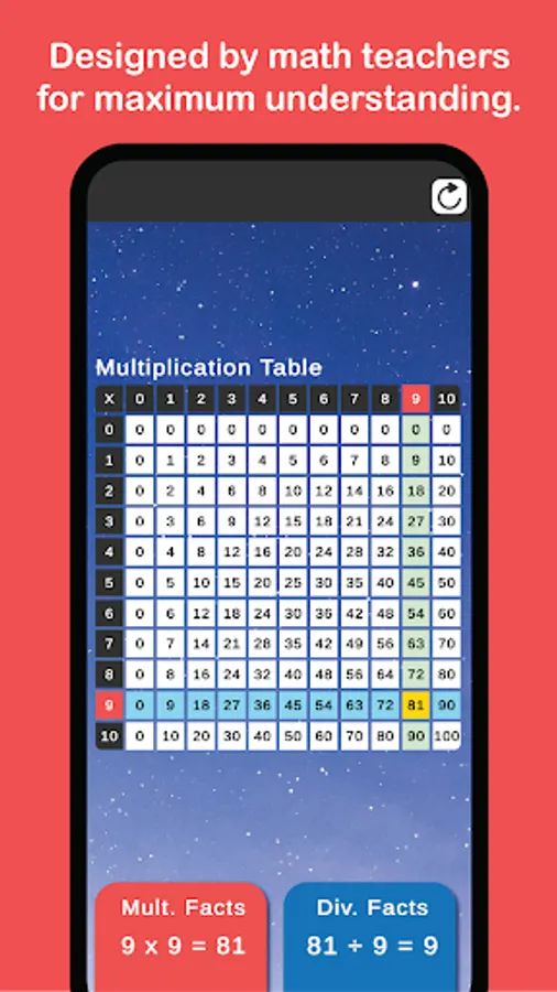 Designed by award winning mathematics teachers, this interactive multiplication table will help you learn your multiplication facts and level up your math skills ASAP! The visual-kinestetic design of the table will help combine learning styles and help permanently embed multiplicative math facts to allow for long term math success.