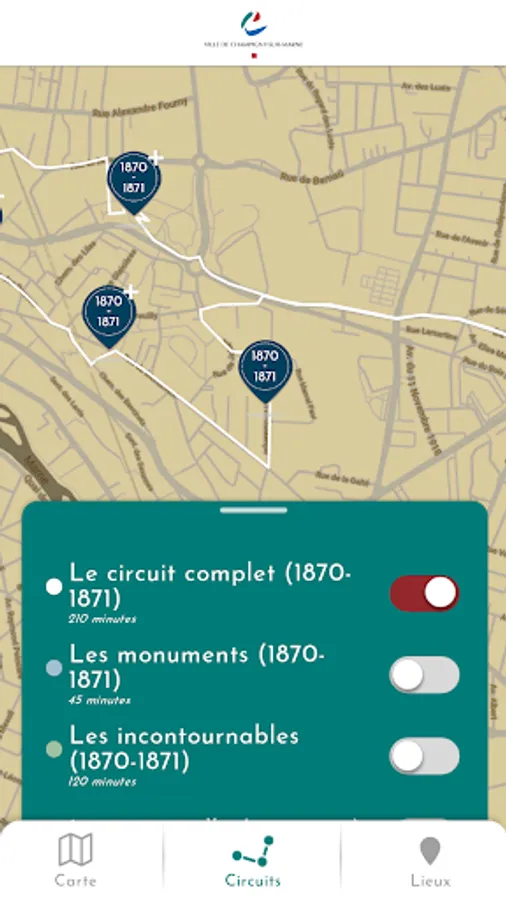 Move around the city thanks to a geolocated map, choose a circuit and be guided to discover places filled with memories! Each of the proposed locations contains a story told orally and illustrated by archival content ...