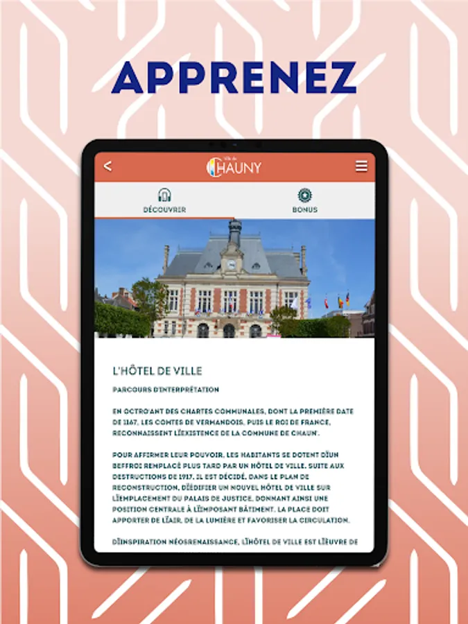 Accompanied by little Josephine, cross the centuries and discover Chauny as you have never seen it before. From the fortified city to the modern city of reconstruction, find the places that have made its history, or simply stroll through the streets to discover its heritage, its art deco ornamentation and its dynamic trade.