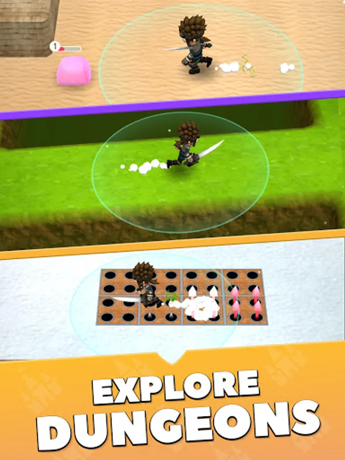 ⚔️ Each world can be completed with different types of weapons : sword, longsword, hammer and staff for endless fighting possibilities