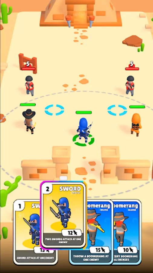 In this mobile game, players must strategically use their deck of ability cards featuring four unique characters: the Archer, the Ninja, the Flamethrower, and the Boomerang Master. The game is set in a thrilling world filled with enemies and challenges, and players must rely on their strategic skills to overcome them.