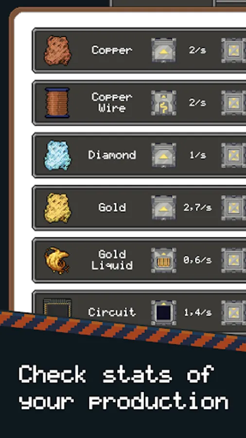 Don't worry if you get lost with all those machines to build, the game offers an information menu so you can see what each machine does at any time. It also offers information on each resource price, so you can make decisions on what to craft. You can also see stats on the amount you are producing.