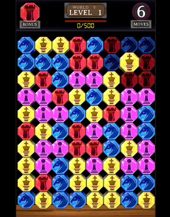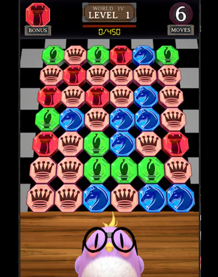 Swap and match Chess Crystals to progress to the next level. There are 6 crystal types - each with their own unique movement.