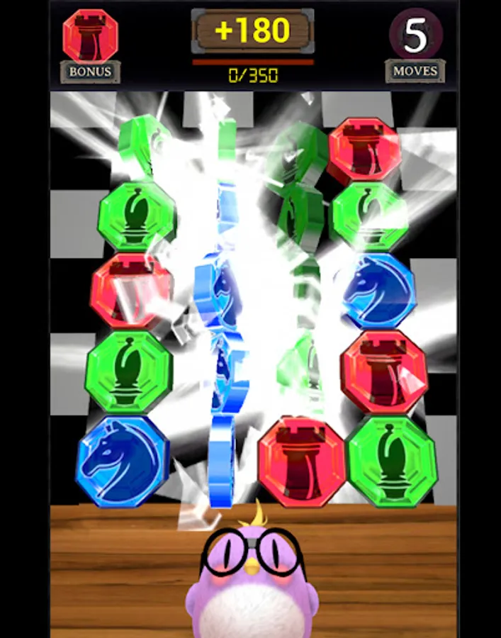 All points earned by matching the x2 Chess Crystal Bonus are DOUBLED! After every move, the x2 Bonus Chess Crystal randomly shuffles to another crystal.