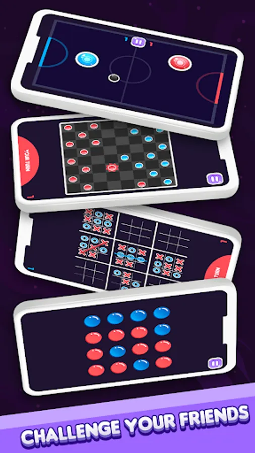 Challenge 2 Player requires two players and one device. Have fun with your friends by playing multiplayer games and doing fun challenges. This is not online multiplayer game, but both players play on the same device. Play games for two.