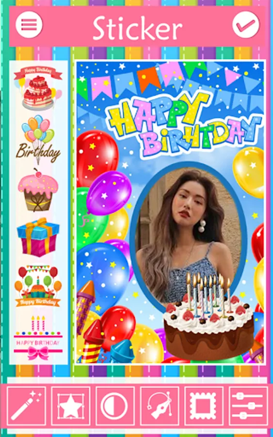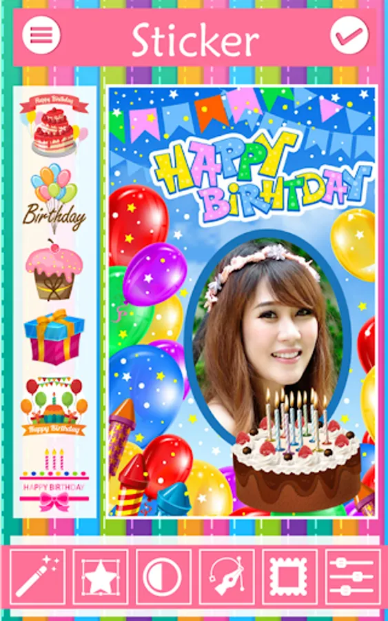 App birthday photo editor with cake you can save your photos stored on SD cards up to share a tribe, or any comments on Facebook. It also can be posted in the online world as Facebook Line Instagram Twitter Messenger and etc.