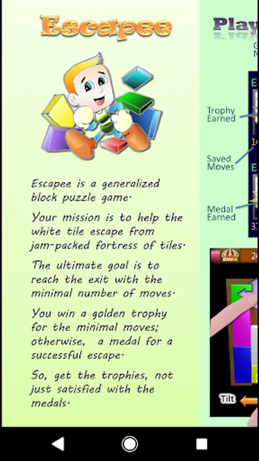 You win a golden trophy for the minimal moves; otherwise, a medal for a successful escape.
