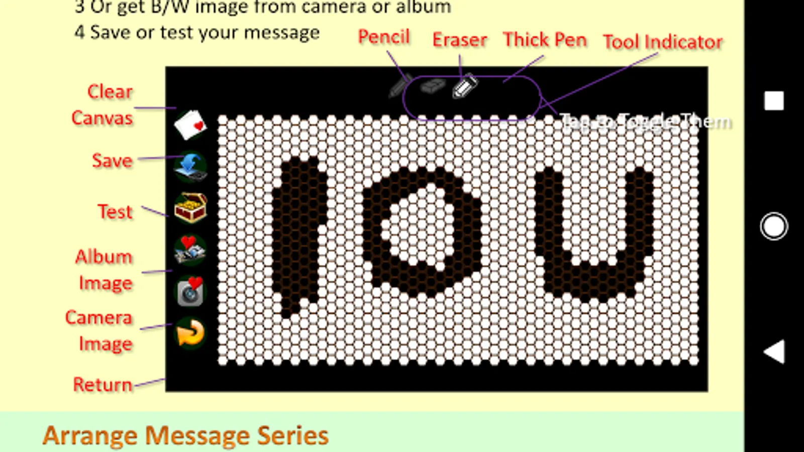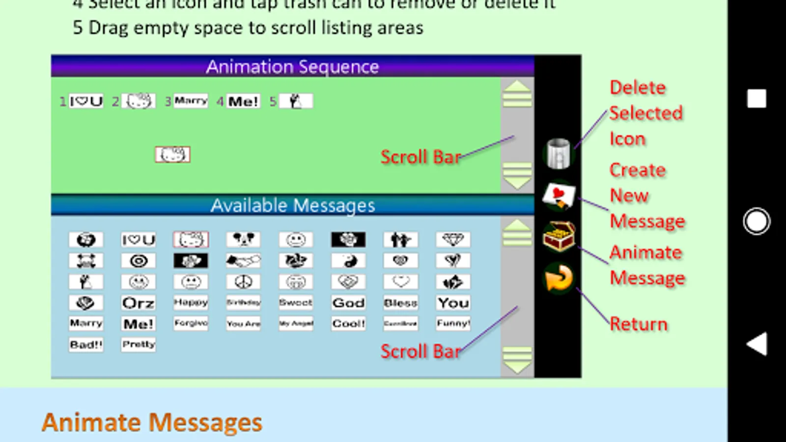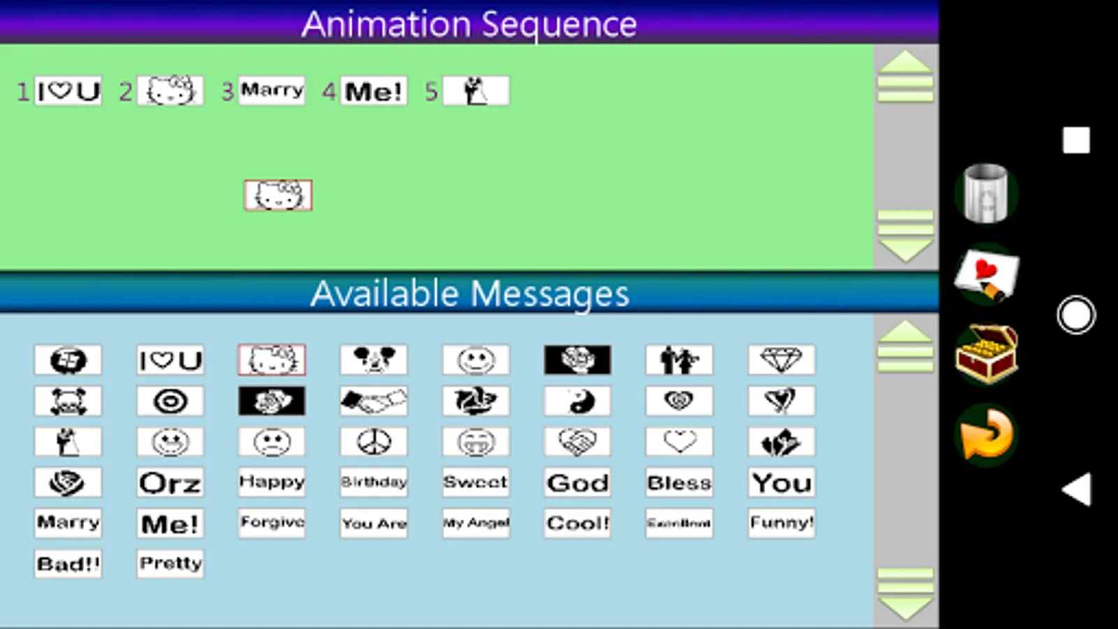 You can draw or prepare your messages frame by frame in advance and chronically arrange them in anticipated orders. Then, let your lover flip the messengers to receive your love. A number of temple messages have been provided for general usages.
