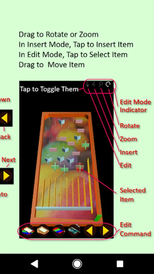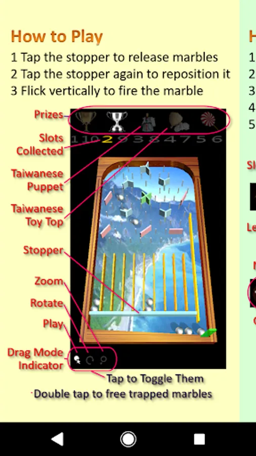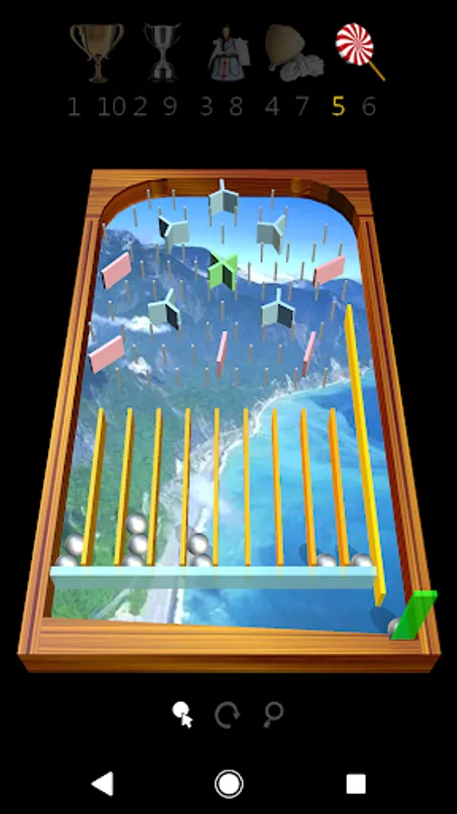 Players can create their own pinball games with different numbers of slots, size configuration, and different texture mappings. Nail barriers and all kinds of spinners can be freely placed on the table face to diversify the traveling routes of marbles.