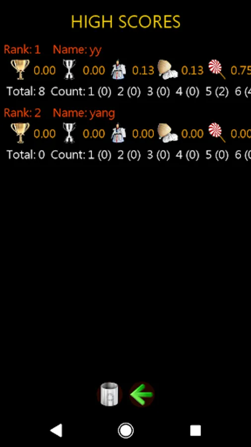 In this phone game, the playing records are collectively stored and calculated to rank the players.