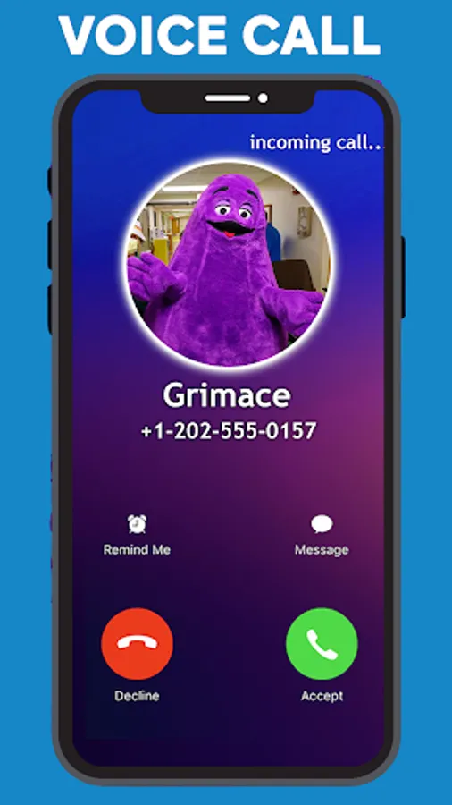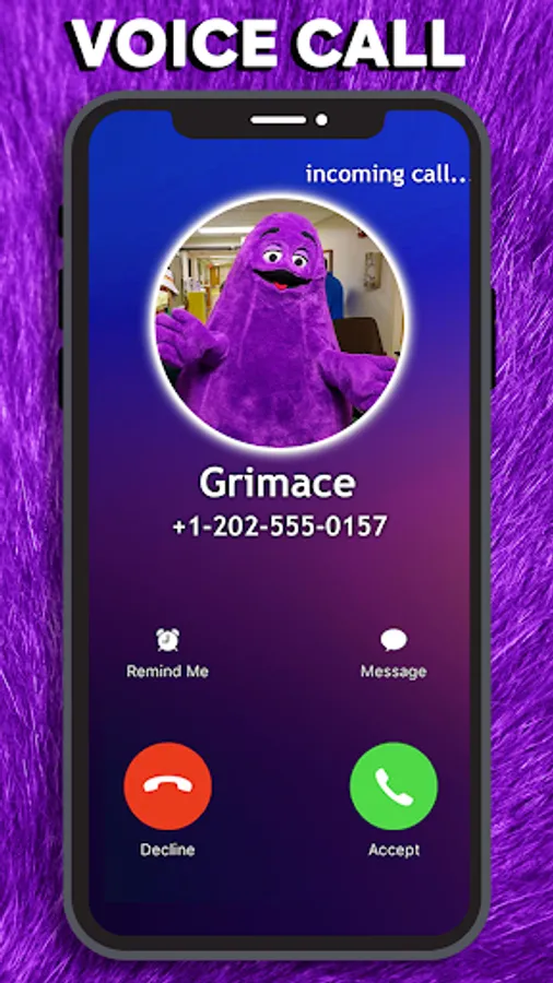 Let's start a fake call with Grimace and prank your friends.