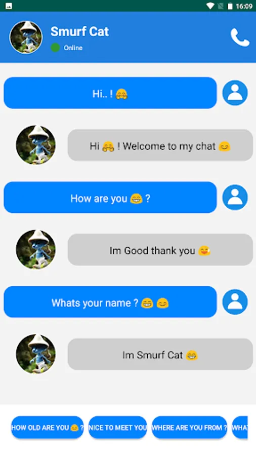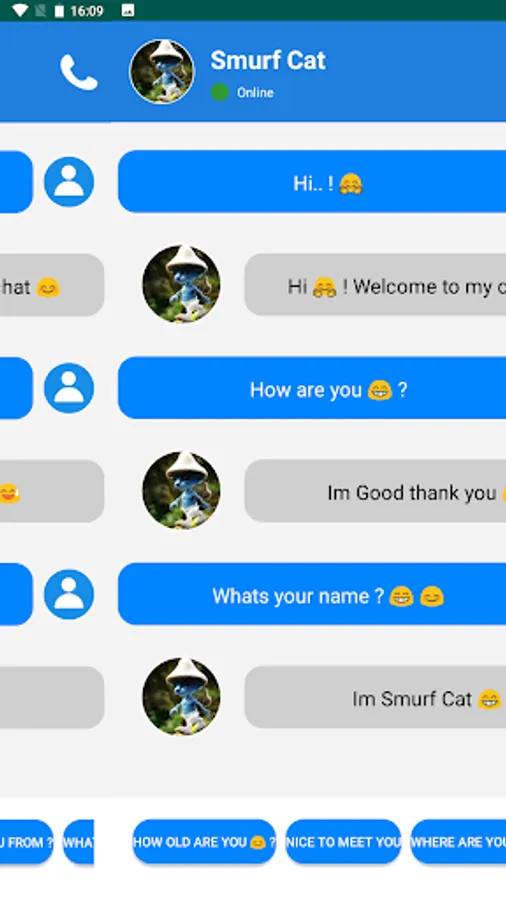 What are you waiting for! Download Smurf Cat Call and play a prank on your friends and family with a video call of the creepy Smurf Cat.