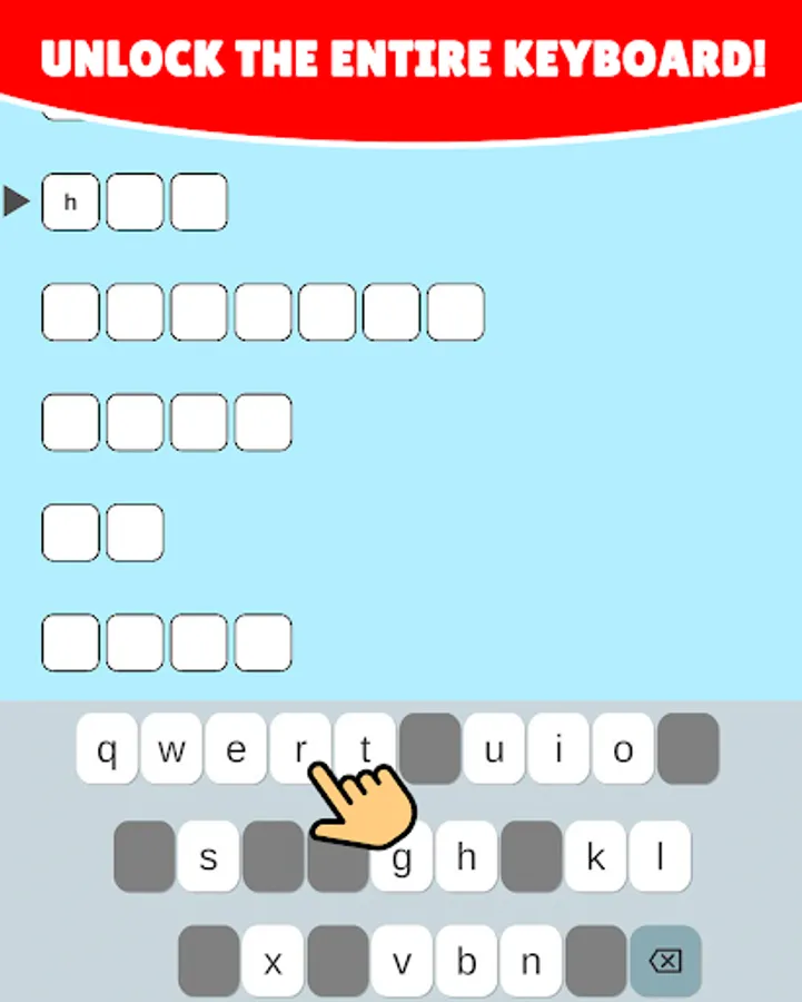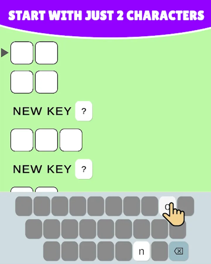 You start with just 2 letters and have to create words in order to fill up the whole keyboard one letter after the other.