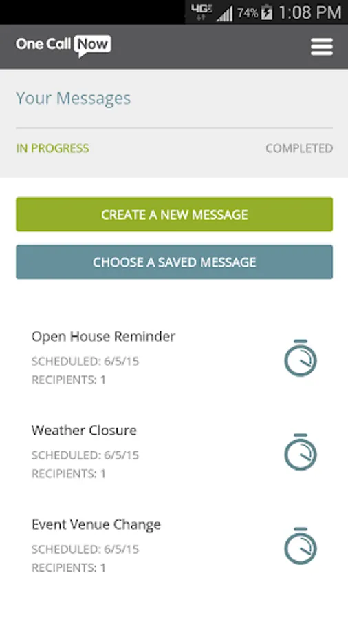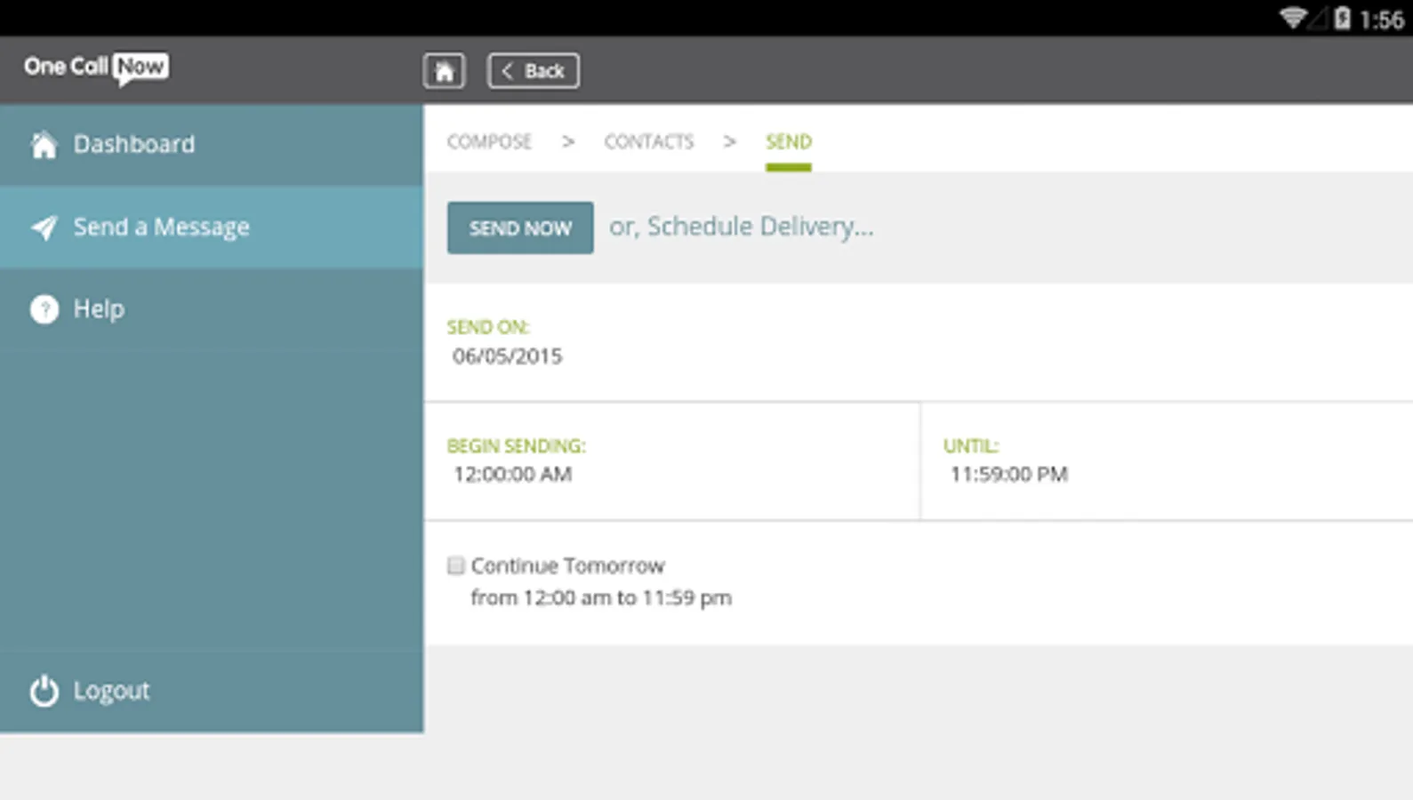 The One Call Now App is a mobile companion to the on-line mass messaging service. It gives clients access to automated tools that send SMS text, voice, and email messages to any size group, turning your phone, tablet or your computer into a mass-messaging powerhouse. Users can quickly record and send messages to all contacts, or to one or more subgroups. All messages can be stored for re-use as needed. Record the message in your own voice using the app, or use the text-to-speech feature to type a message instead and have it delivered in a natural-sounding automated voice. View message reports on your phone or tablet to see who received the message, no matter where you are. Use the app to send emergency alerts and closings, appointment reminders, employee notifications, event announcements or any other type of message that needs to go to a large group of people quickly. Contacts can even reply to the message via phone, email or text. The One Call Now App requires a free trial or paid subscription calling plan available online at www.onecallnow.com or by calling 800.462.0512. There are plan sizes to fit any budget.