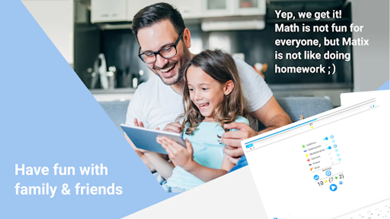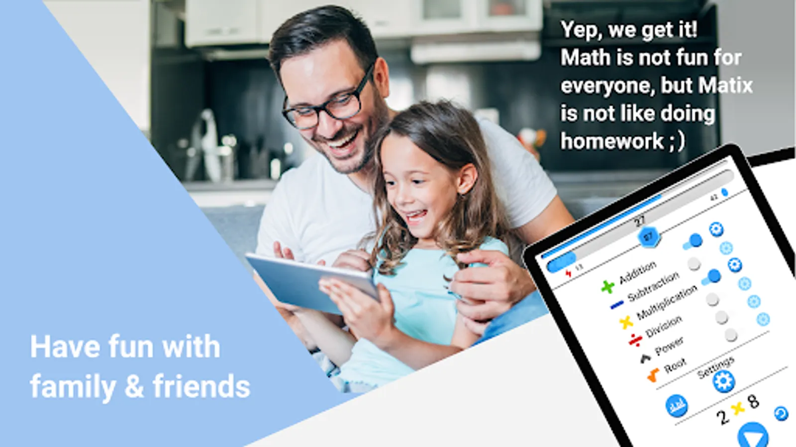 Math teachers and educators can practice, with their class and students, specific operators or math quiz setups, add Matix to your homework.