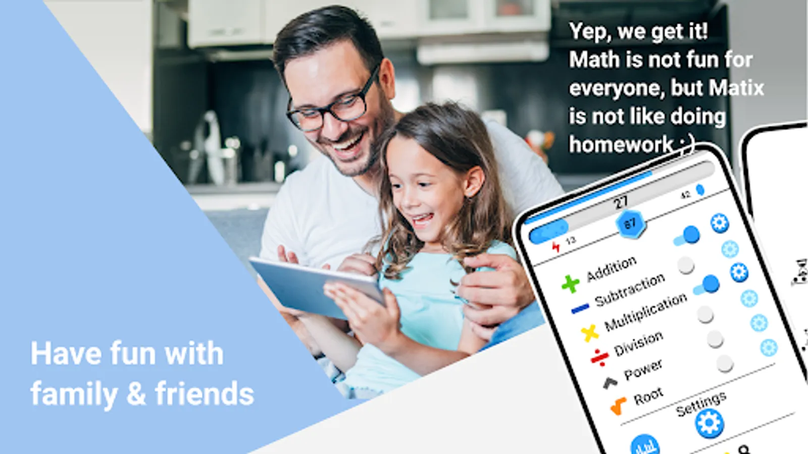 ★ Matix has exiting multiplication math game areas for every skill level and age, jump right in to this awesome experience, both young and adults will have the same amount of fun and skill progression.
