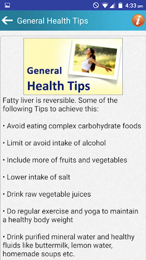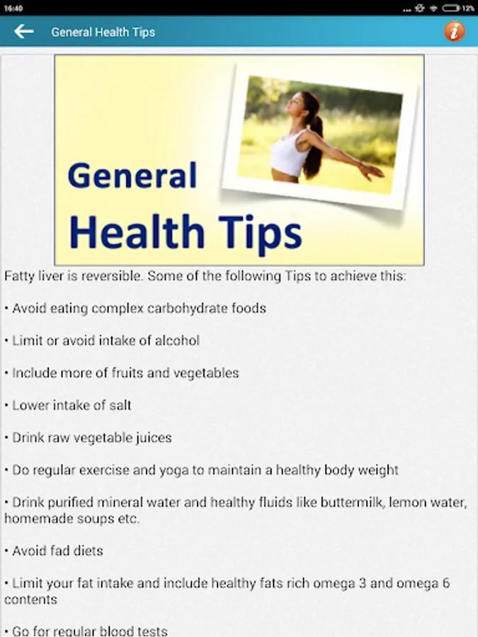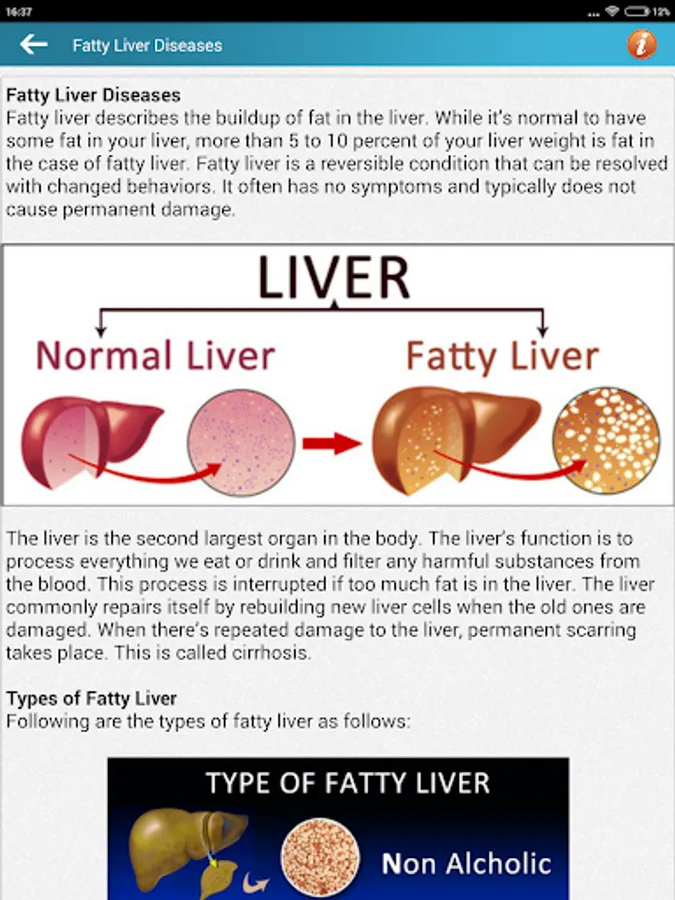 Fatty Liver Diet & Health Tips is a Free App for android mobile devices that provides all diet tips and help information about fatty liver or hepatic steatosis. The liver is one of the largest organ in the body. The liver commonly repairs itself by rebuilding new liver cells when the old ones are damaged. When there’s repeated damage to the liver, permanent scarring occurs.