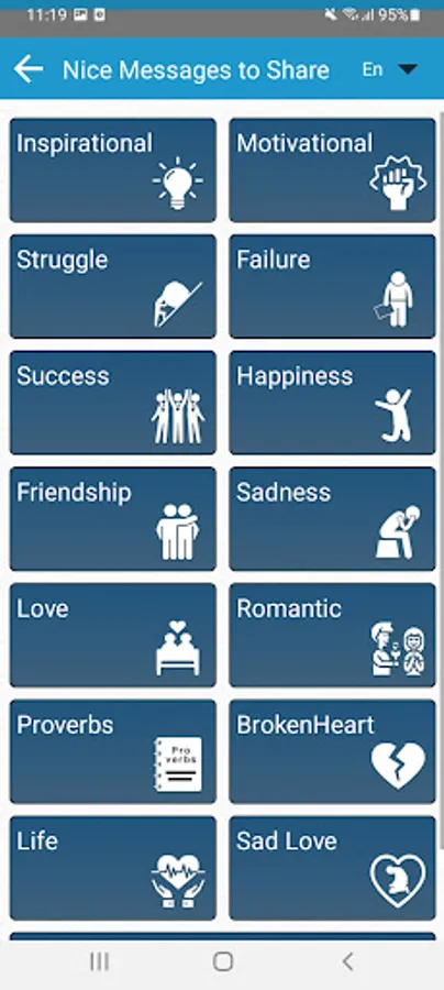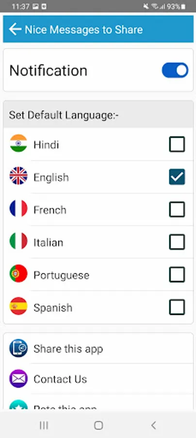App contains cool Messages for all occasions to share on social media and chat in English French Italian Portuguese Spanish Hindi languages.