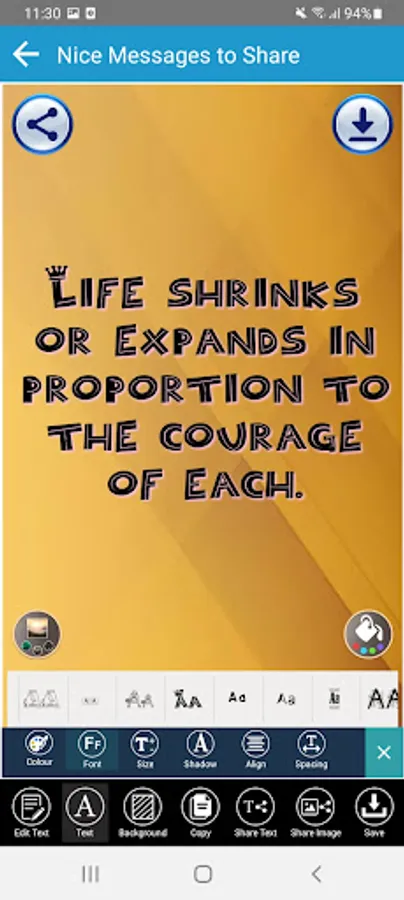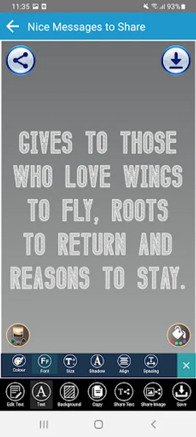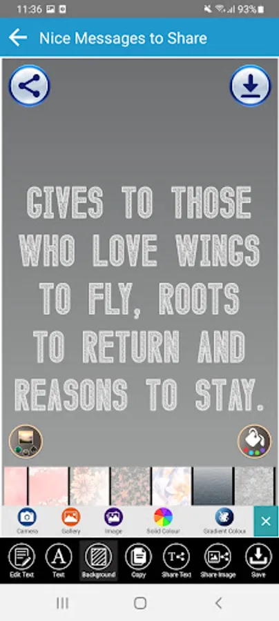 App also has Quotes editor that allows you to design and create your own social media posts and Quotes messages with a number of Professional Designing tools and background.