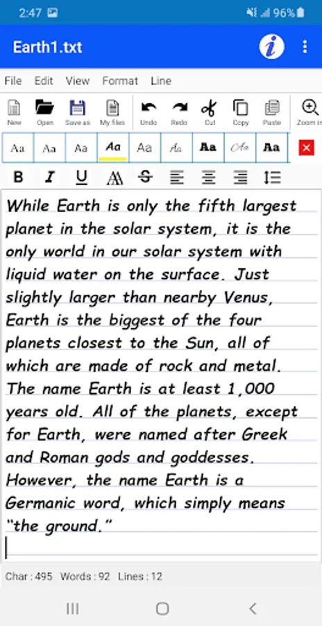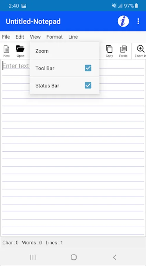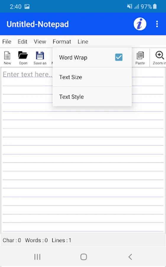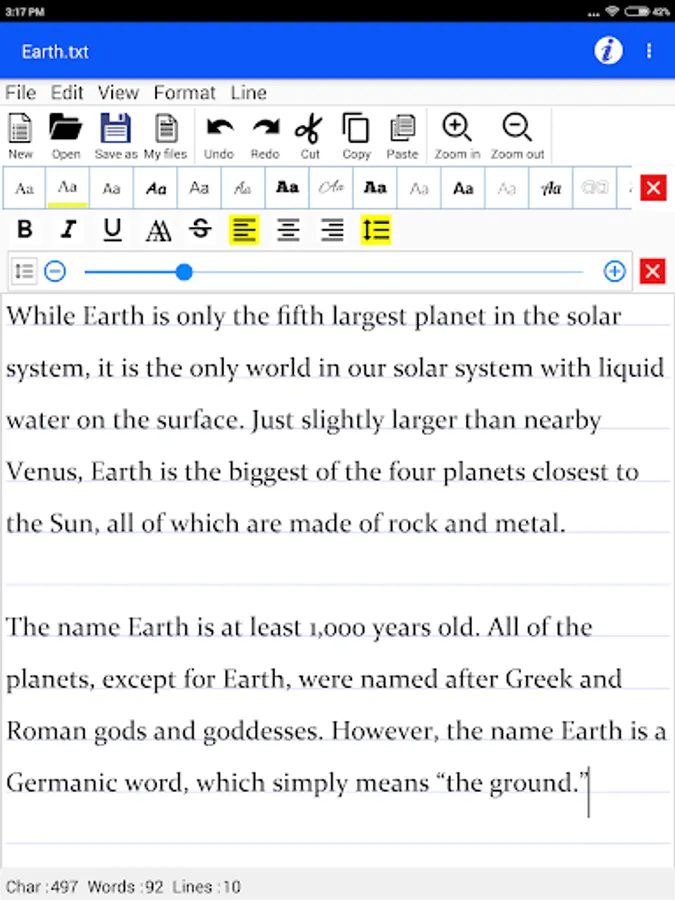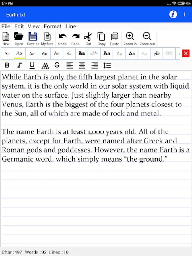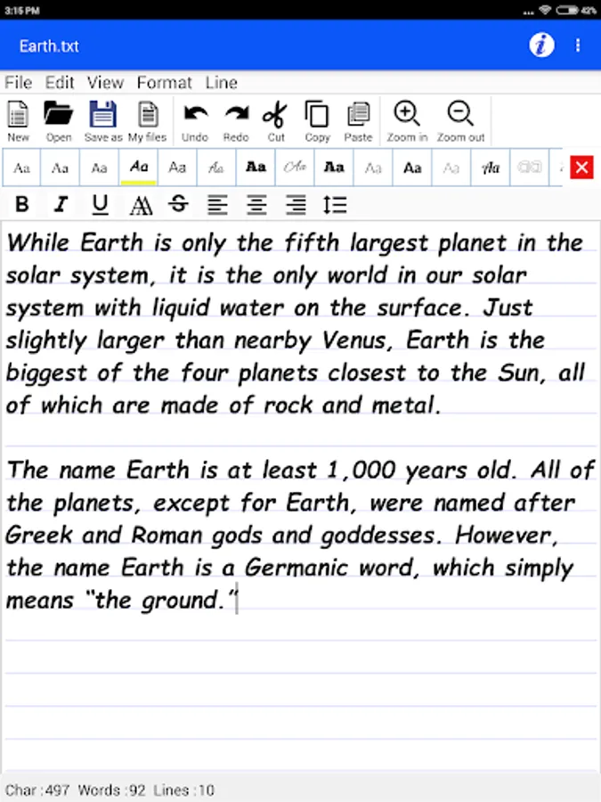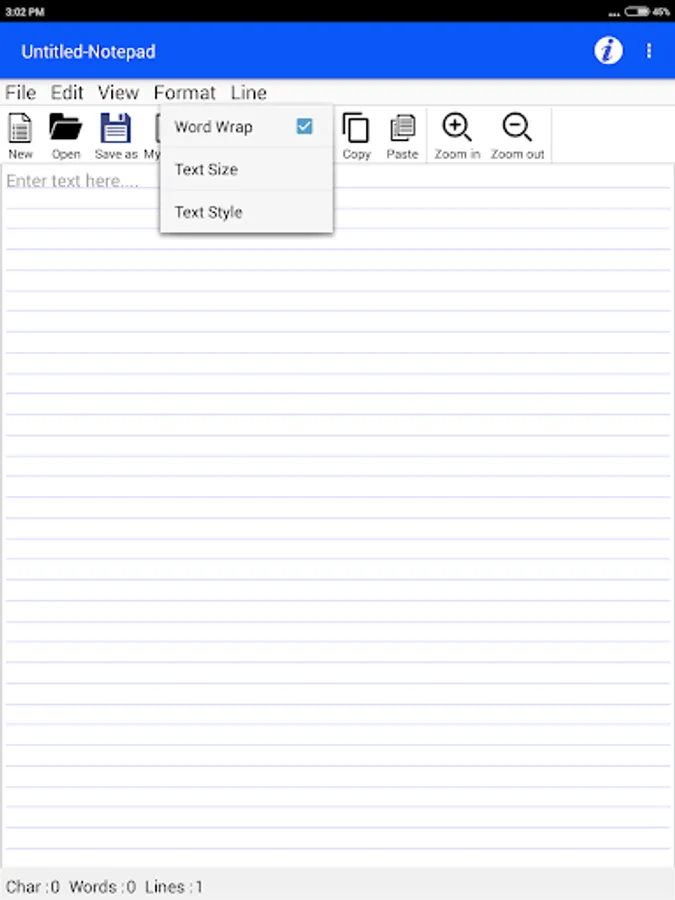 We have added all the important features of classic Text Editors in this app to make you feel like you are making TXT Format text file in your Laptop or PC.