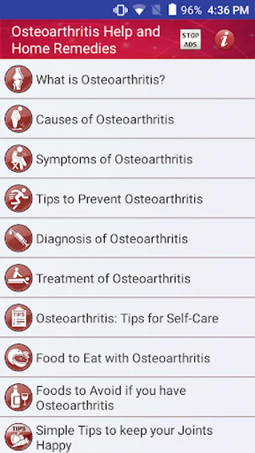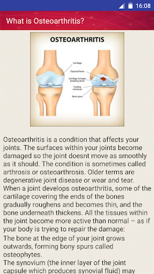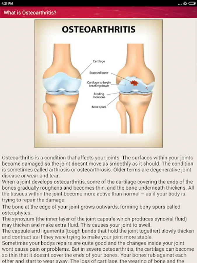 In this app we have tried compiling information on causes symptoms treatment prevention home remedies foods to eat and avoid for osteoarthritis. Osteoarthritis, the most common form of arthritis caused by cartilage degeneration, is affecting many people worldwide especially the older age.