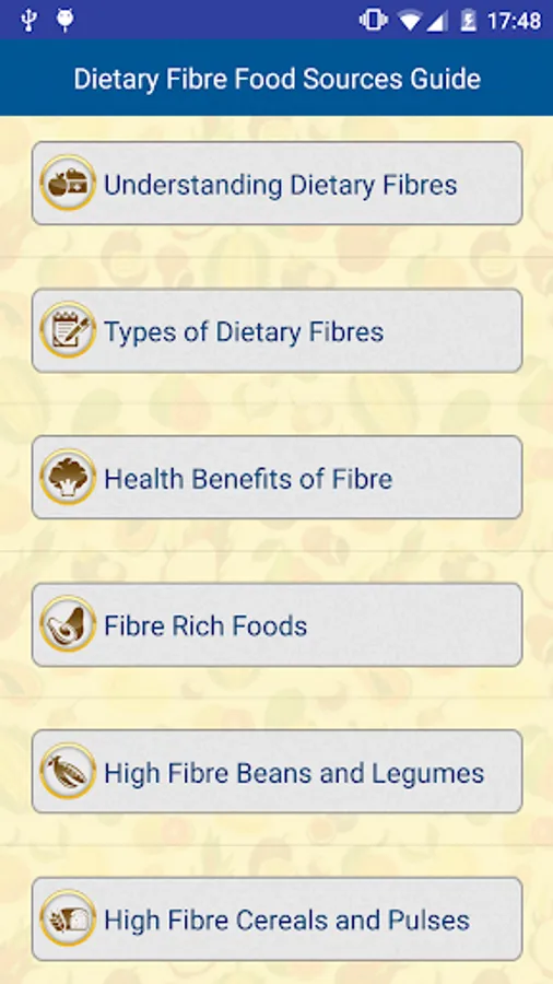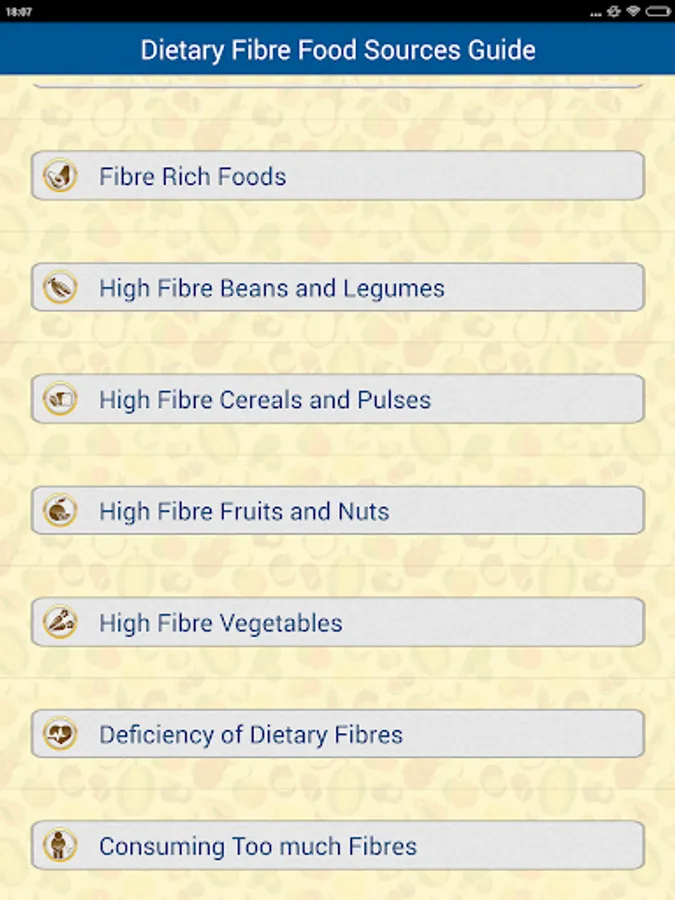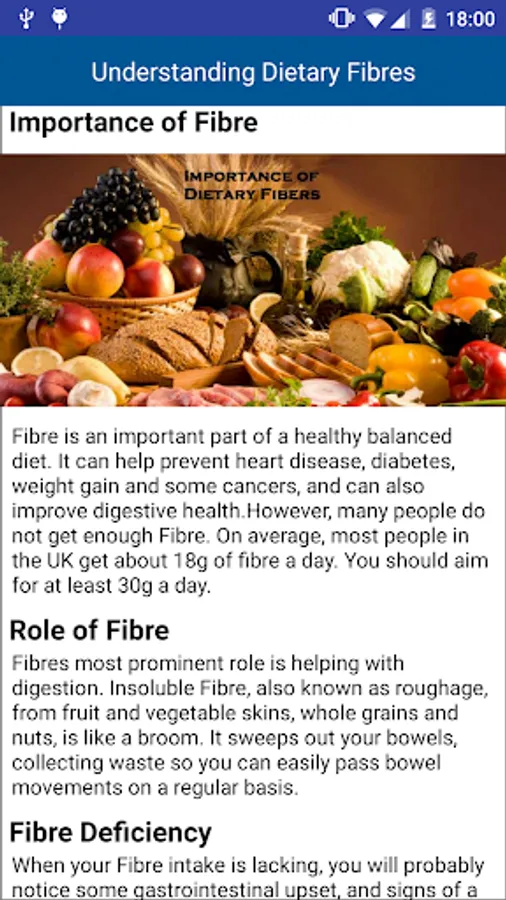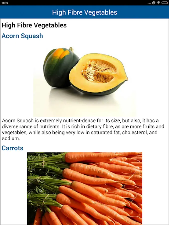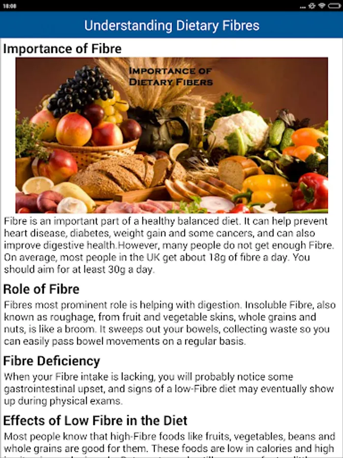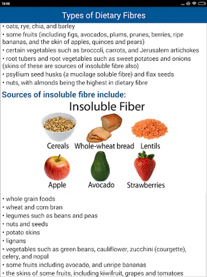 Dietary Fiber Foods guide is a free app about foods fruits & vegetables diets for people of all ages showing the list of great High Fiber foods that you must eat for Healthy Gut Intestines Health & weight loss. We have compiled all type of high Fiber food sources suitable for your daily diet.
