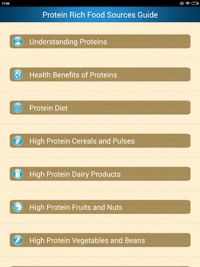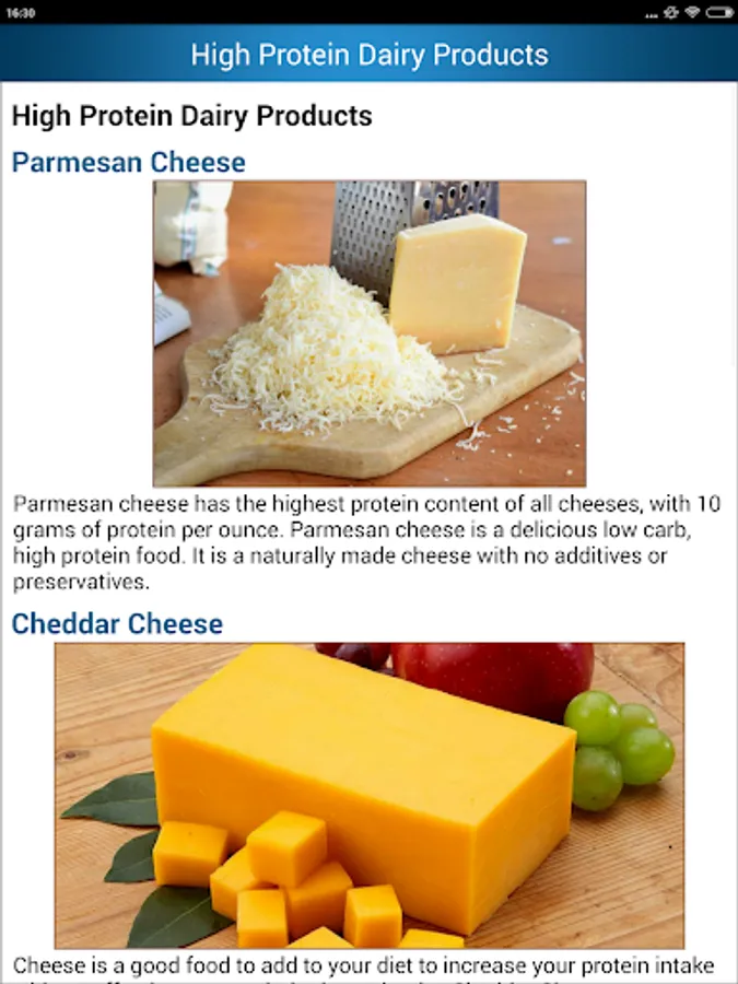Protein Rich Food Source Guide is a free app about top protein foods and high protein diets for vegetarian or non-vegetarian people of all ages. App has information about all type of high quality protein food sources suitable for a number of purposes such as muscle building or Rapid Weight Loss or bodybuilding or just for daily breakfast or other meals.
