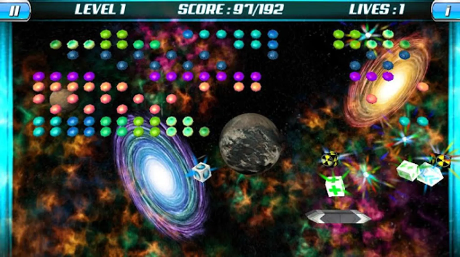 Welcome to Arkanoid Galaxy HD 2021! Ready to conquer the Universe? A 70's classic game remade with an exotic space taste! Explore different galaxies with stunning views and exciting challenges! A classic breakout arkanoid game with a different planet to conquer in every level! These are the main features that this game offers :