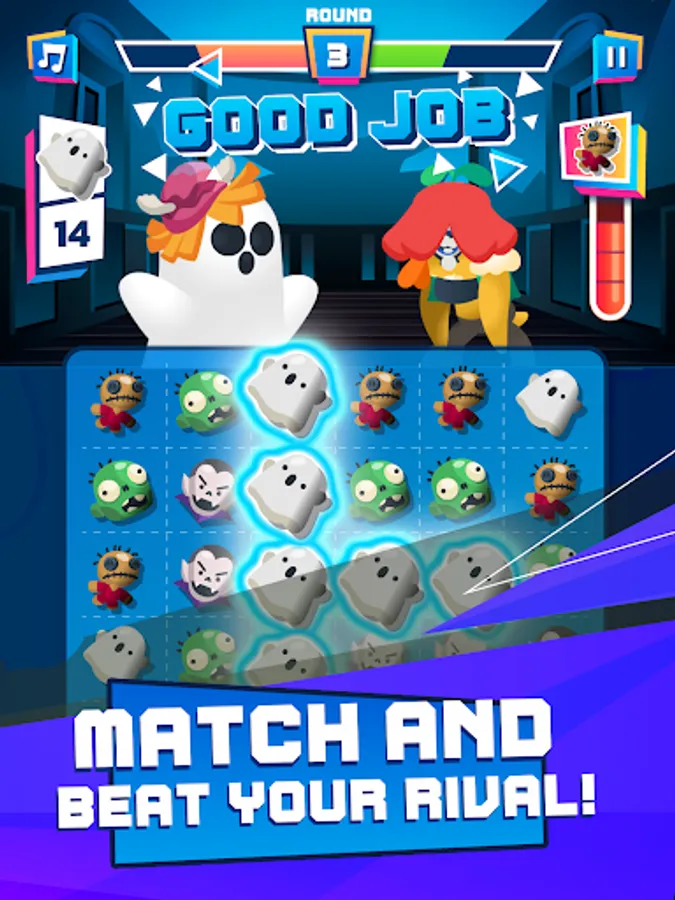 Play this amazingly fun match 3 duel by choosing a character and matching pieces to beat your opponent in every level!