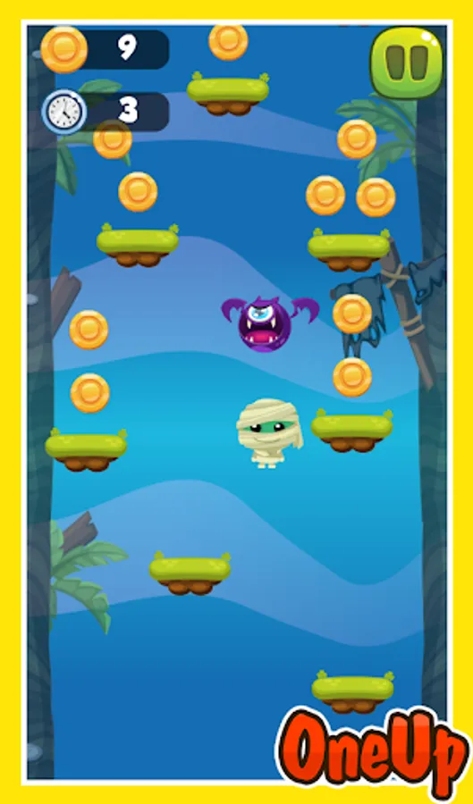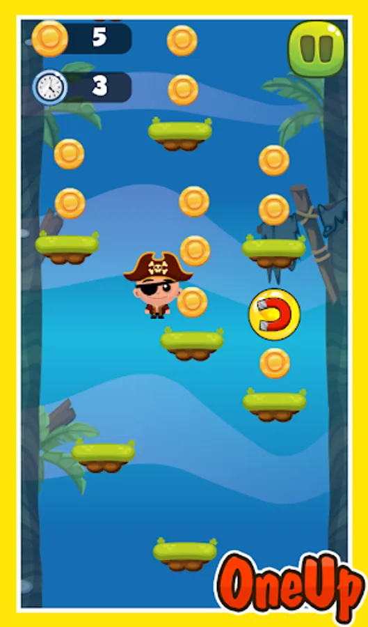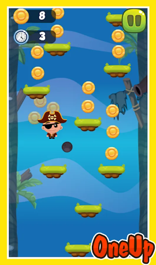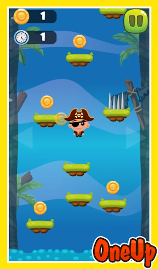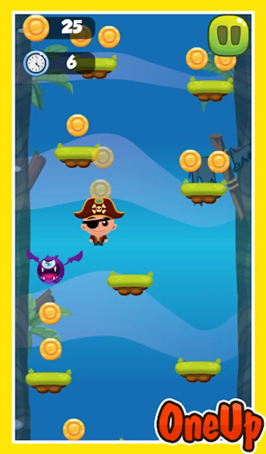 OneUp - Jump with the pirate in the water world, collect all coins and avoid the monsters and obstacles that you face