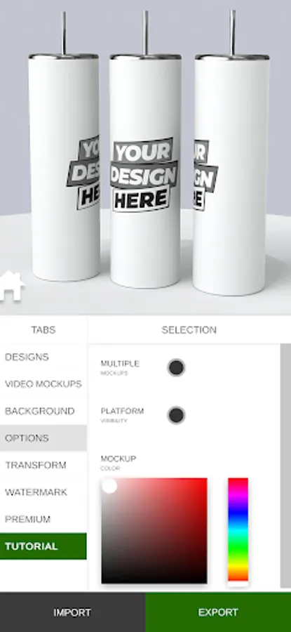 One of the standout features of Mockup Creator is its ability to import and customize your own designs. Simply upload your π· image and position it on the mockup object, adjusting the scale and orientation to get the perfect look. You can even change the object's color to match your brand. π¨