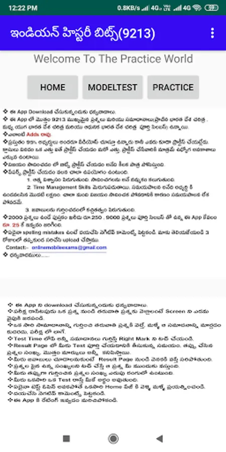 *2000 ప్రశ్నలు ఉండే పుస్తకం ఖరీదు రూ.250 , 9000 ప్రశ్నలు పూర్తి సిలబస్ తో ఉన్న ఈ App కేవలం రూ. 25 కే ఇవ్వడం జరిగింది.