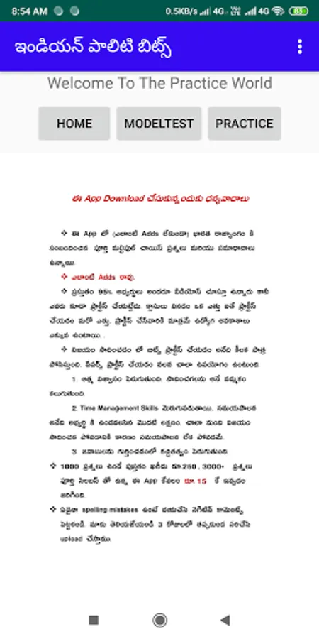 *1000 ప్రశ్నలు ఉండే పుస్తకం ఖరీదు రూ.250 , 3000+ ప్రశ్నలు పూర్తి సిలబస్ తో ఉన్న ఈ App కేవలం రూ. 15 కే ఇవ్వడం జరిగింది.