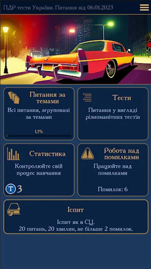 • Official tests of the Road Traffic Rules for preparation for the theoretical exam in Ukraine.