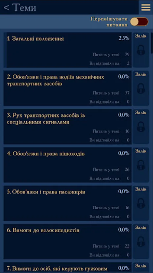 • More than 2,000 questions with illustrations from the website of the Main Service Center of the Ministry of Internal Affairs of Ukraine.