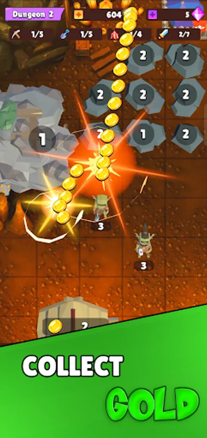 • Collect crystals, upgrade gold mines to become a digging tycoon