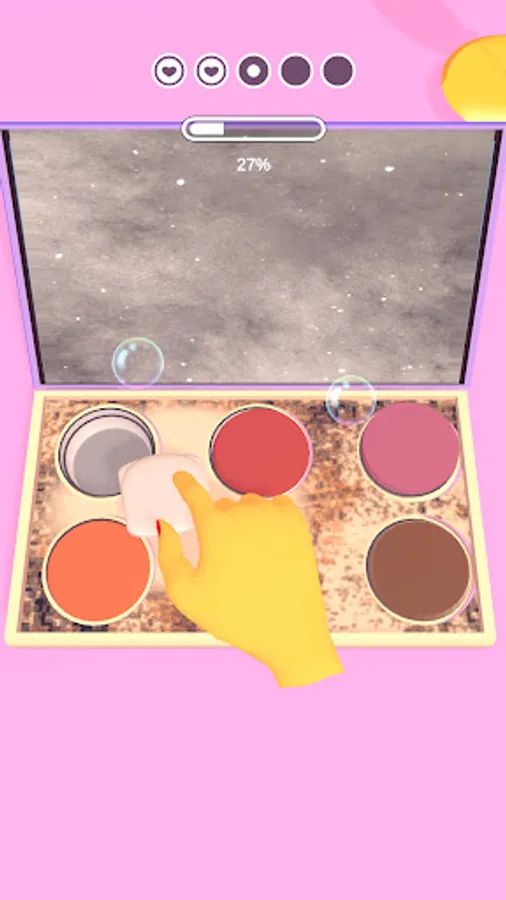 Repair or clean makeup boxes. Fulfill empty places with funny process.