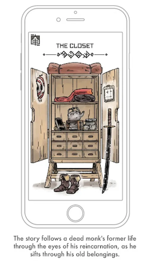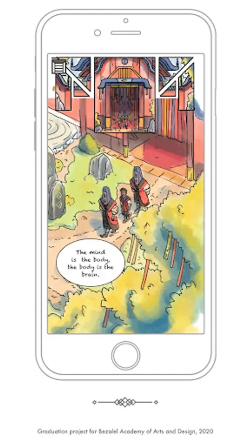 The Nowhere is a comic story, created especially for mobile reading. It tells the story of a monk's past lives through bits of his memories stored in his belongings. Each memory tells a short story from his life, and each offers a unique reading capability enabled only in this format.