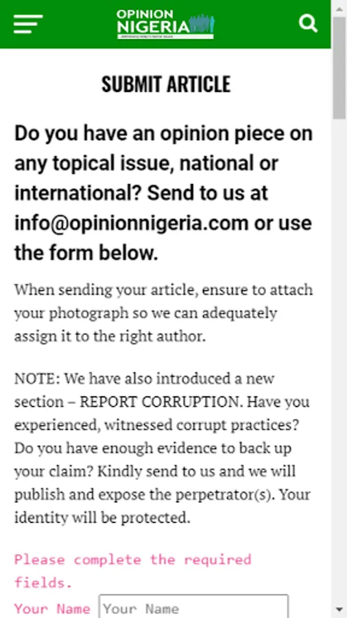 Opinion Nigeria is a practical online community where both local and international authors through their opinion pieces, address today’s topical issues. In Opinion Nigeria, we believe in the right to freedom of opinion and expression. We believe that people should be free to express their opinion without interference from anyone especially the government.