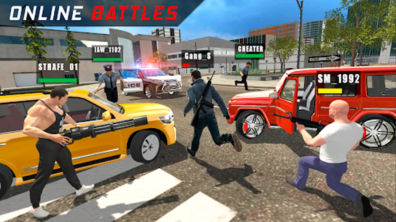 Become a policeman or gangster, hop into the modern car 4x4 and ride around the city.