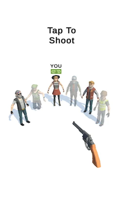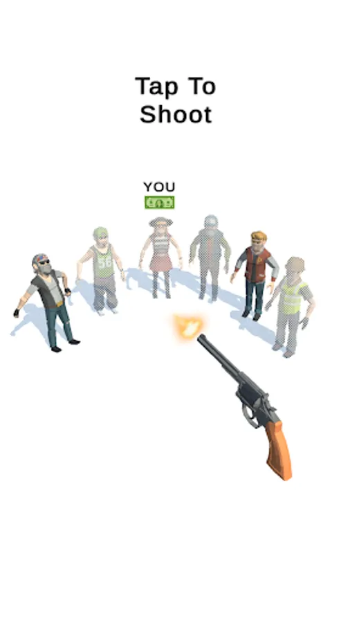 Feeling Lucky is a game where you have to select a target and bet money on the person who will be shot in order to pass to the next level.