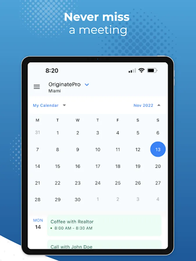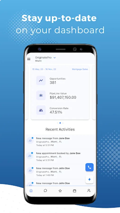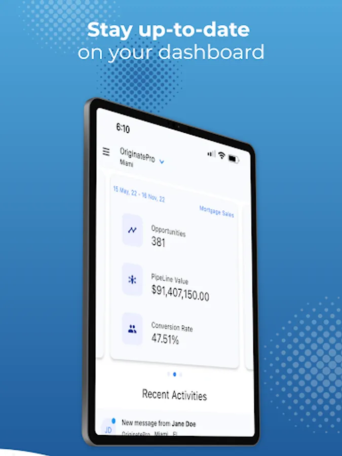 OriginatePro is a complete centralized comprehensive mortgage CRM that will help you close more loans faster with less hassle, streamline your workflow, and increase your productivity. Whether you are in your office or on the go, the OriginatePro mobile app is always with you, helping you engage with your borrowers.