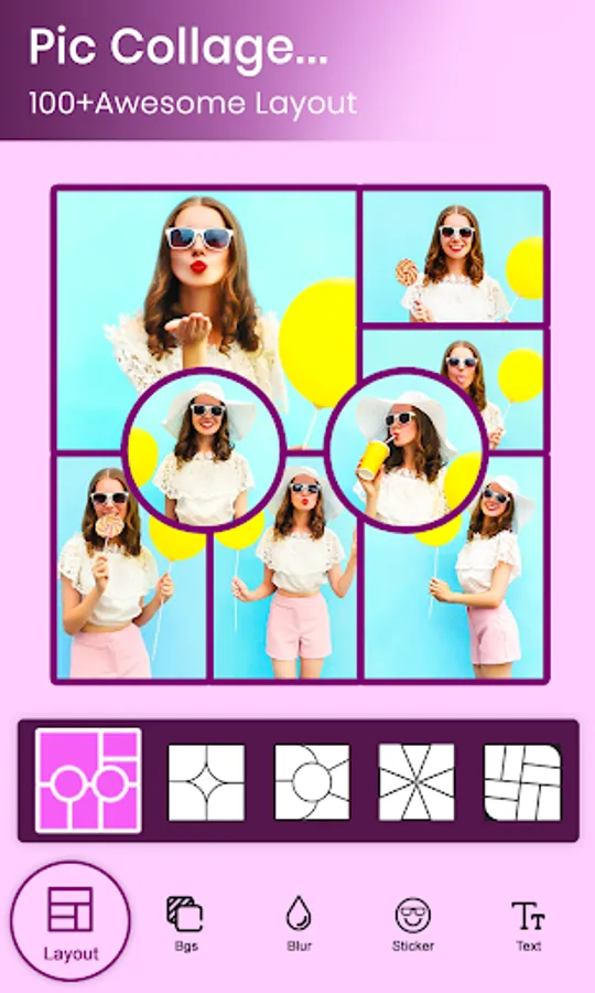 With Photo Collage app you can Crop, resize, blur photo, image ratio and beautify your photos-pictures with grid layouts, contrast, saturation, textures, shades to your picture and many things you can do with this photo editor.