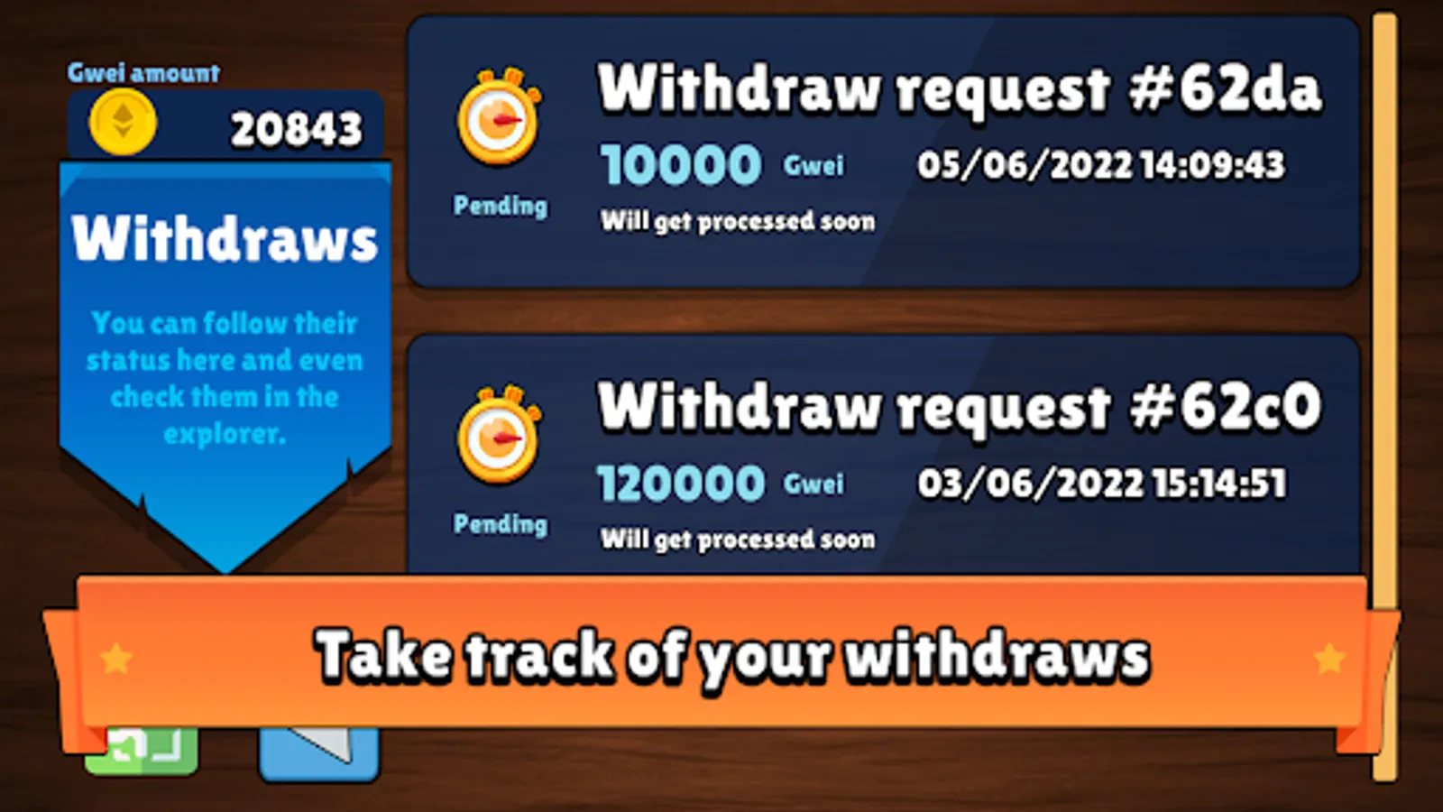 In our new versions you will be able to earn cryptocurrencies while you play, and withdraw them to your personal wallet! The more you play the more you earn, the more difficult the level, the greater the earnings are. You can choose between BTC, ETH, LTC, SOL, BNB, IOTA, DOGE and much more!