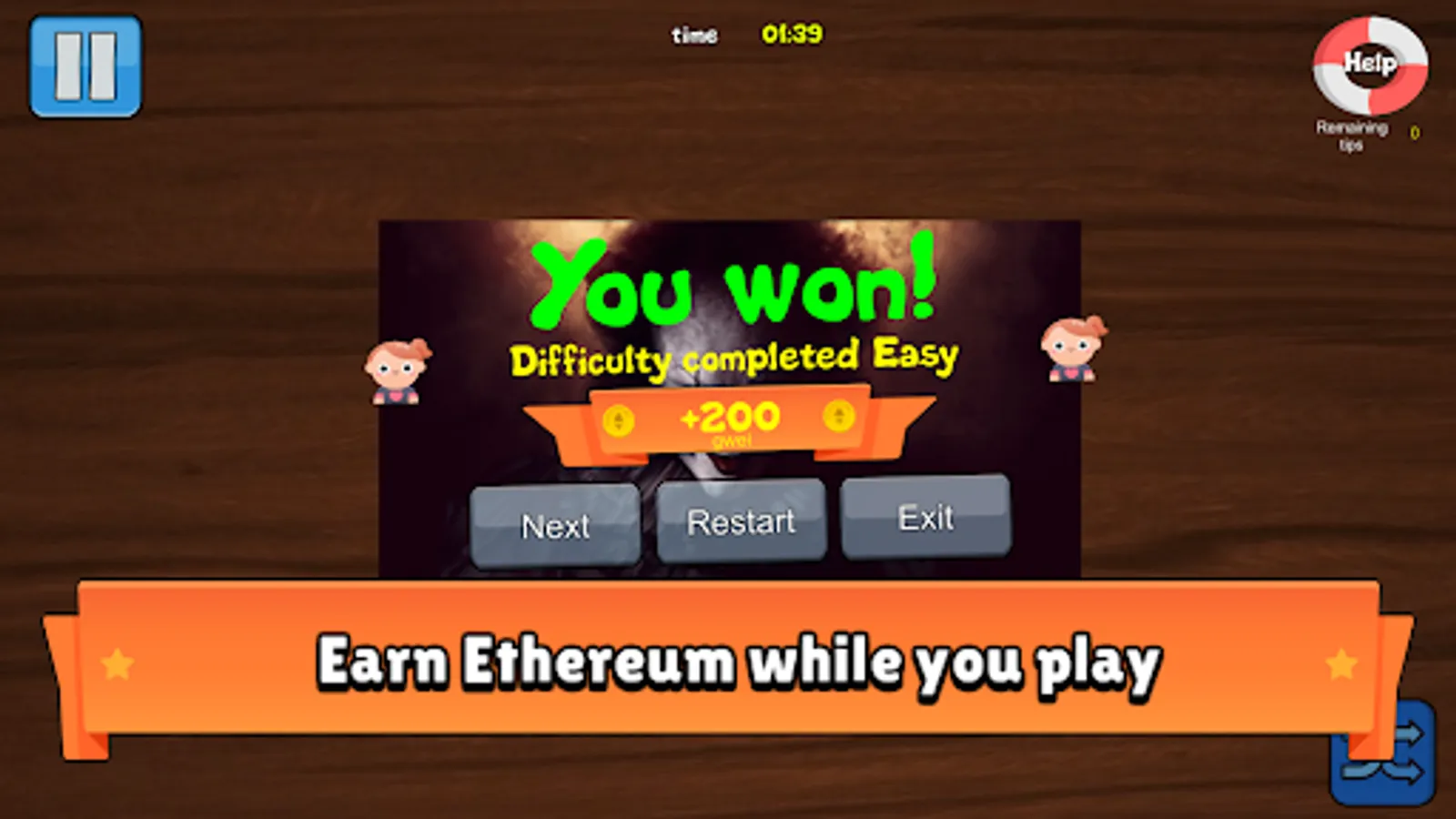 Depending on the difficulty, the number of pieces can increase and the time runs faster, with a harder difficulty, you will have less time to complete the levels, but at the same time, you will earn more cryptocurrencies. Every effort is rewarded!