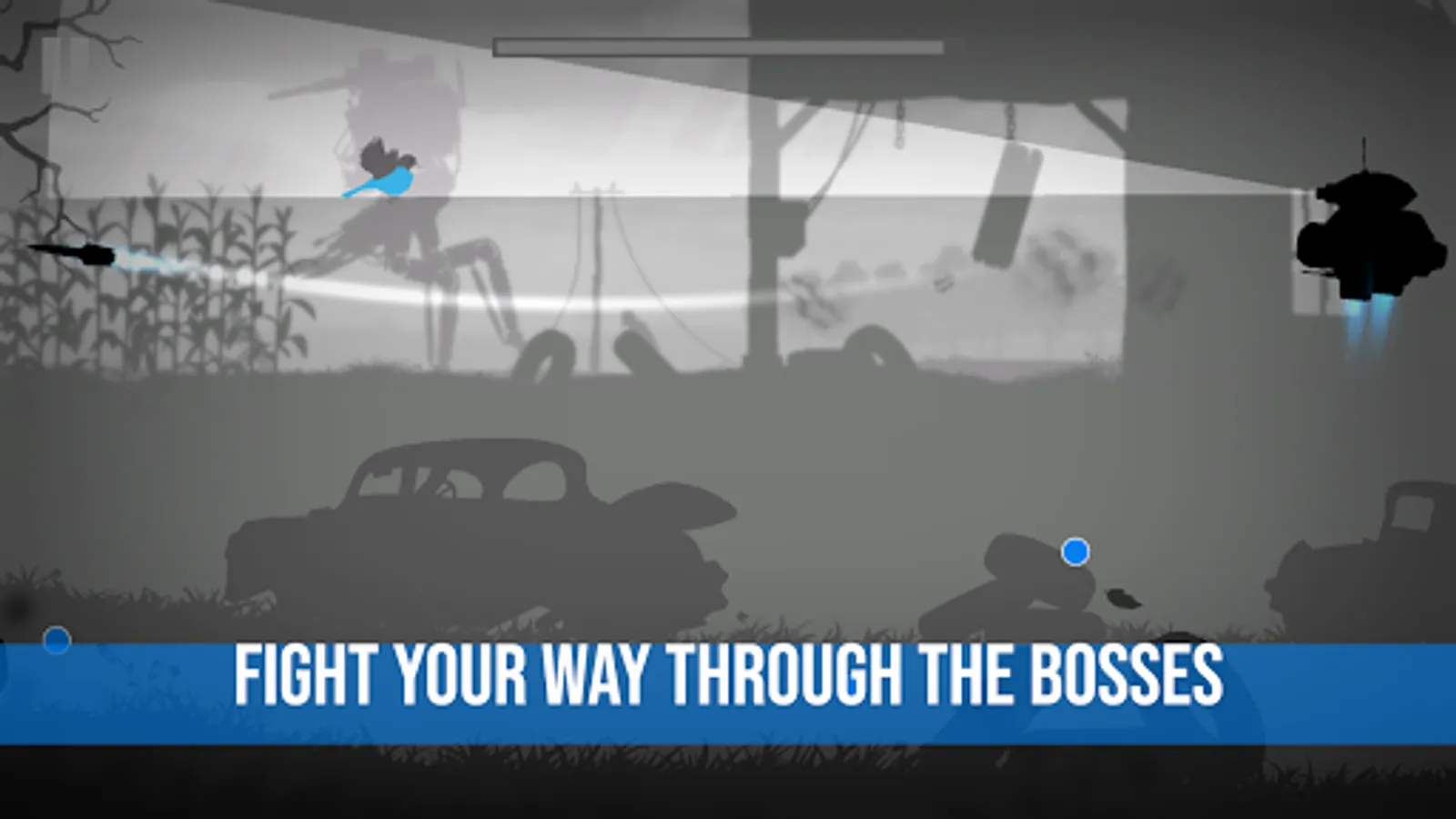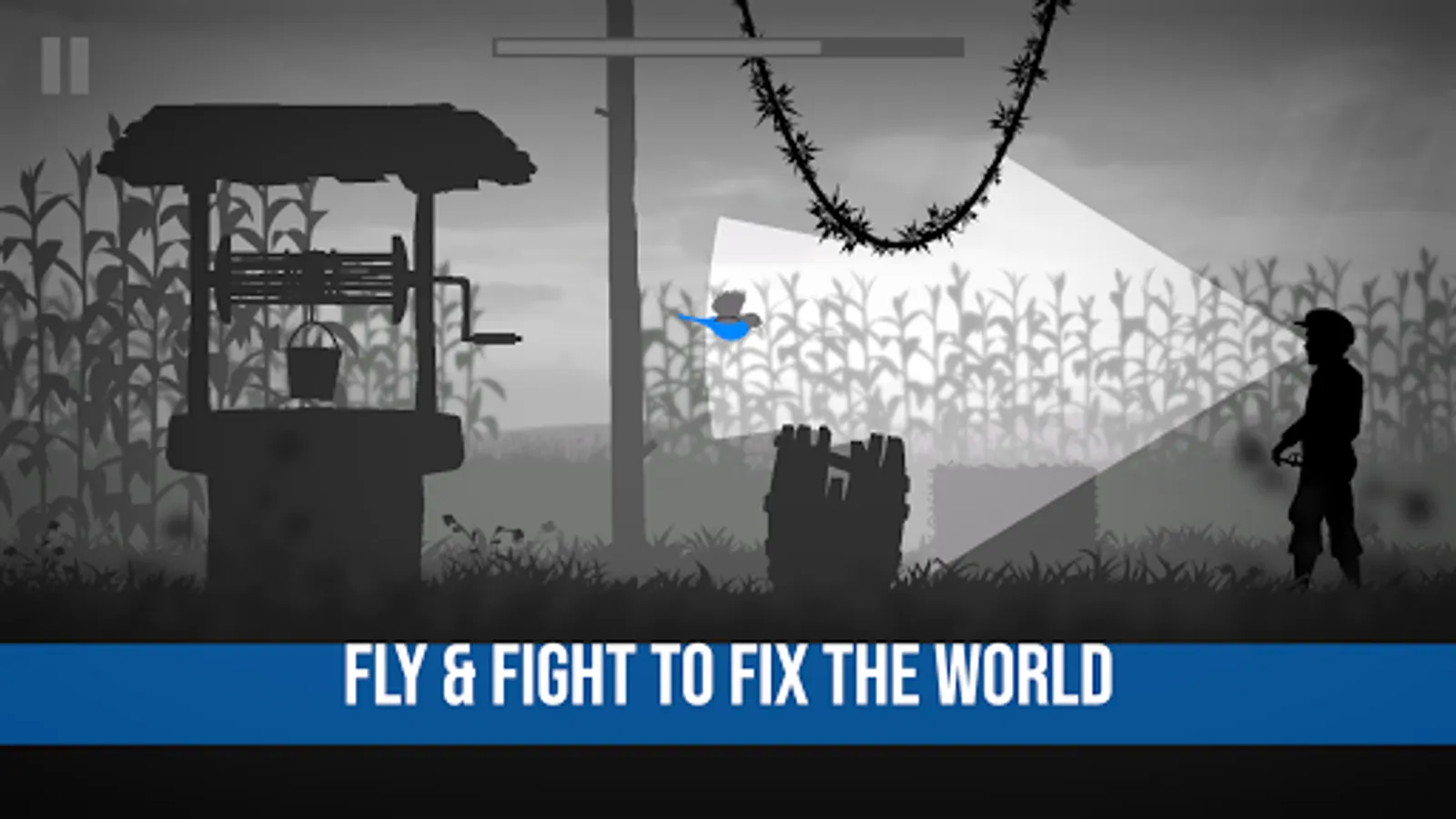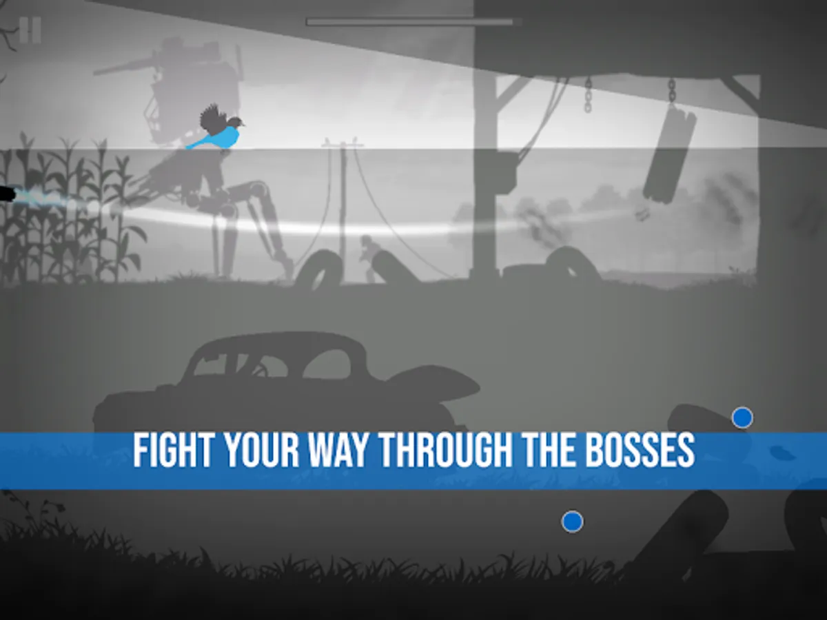 Grayland is a noir story of seeking your loved one captured by Humans. You, as a little bird find yourself in the middle of the war between the Human and the Alien forces. Fly and fight your way through the radiation filled lands, fly inside the mines and buildings and beat the bosses.
