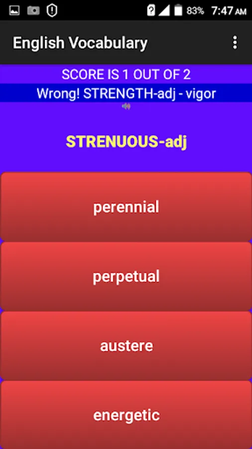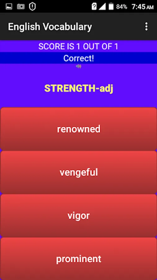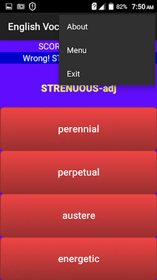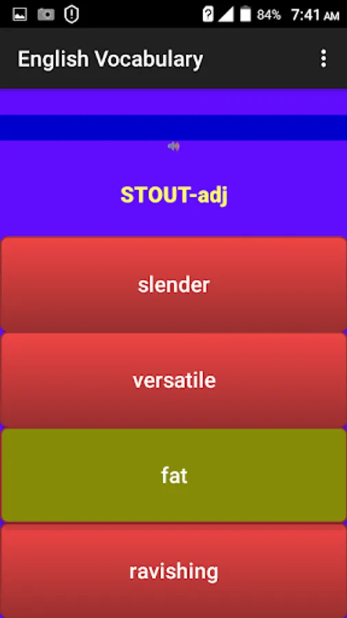 English Vocabulary is an off-line application that lets you memorize briskly all the words from it. It is specially devised to ease your understanding of those unfamiliar words which you don’t know. All you just have to do is to repeatedly use this. The application is comprises of 10 practice tests that will fortify your vocabulary in just a few days. By Using the English Vocabulary you will be able to increase your confidence in your career or if you are student it will boost your grade because you will achieve great success if you have acquired enough words. People will look at you that you are smart and competent.
