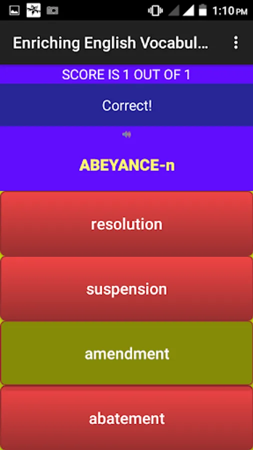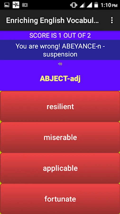 Enriching English Vocabulary is a trial version of English Vocabulary. It is an off-line application that lets you memorize briskly all the words from it. It is specially devised to ease your understanding of those unfamiliar words which you don’t know. All you just have to do is to repeatedly use this. The application is comprises of several items practice test that will fortify your vocabulary in just a few days. By Using the English Vocabulary you will be able to increase your confidence in your career or if you are student it will boost your grade because you will achieve great success if you have acquired enough words. People will look at you that you are smart and competent.