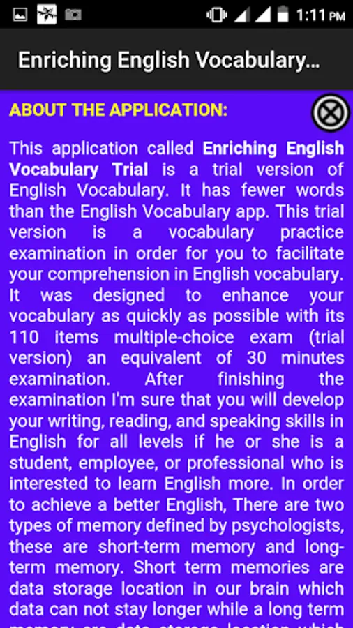 Doesn't your memory has stored enough words for you to retrieve when reading, speaking, and writing? If yes, this is the right English application for you…